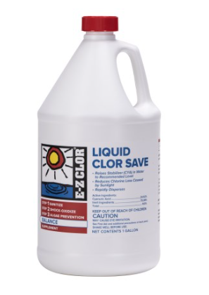 Our Liquid Clor Save raises stabilizer (CYA) in water to recommended level and reduces chlorine demand. It prolongs the effective life of chlorine by reducing loss caused by the sun. This liquid will dissolve completely when applied as directed.