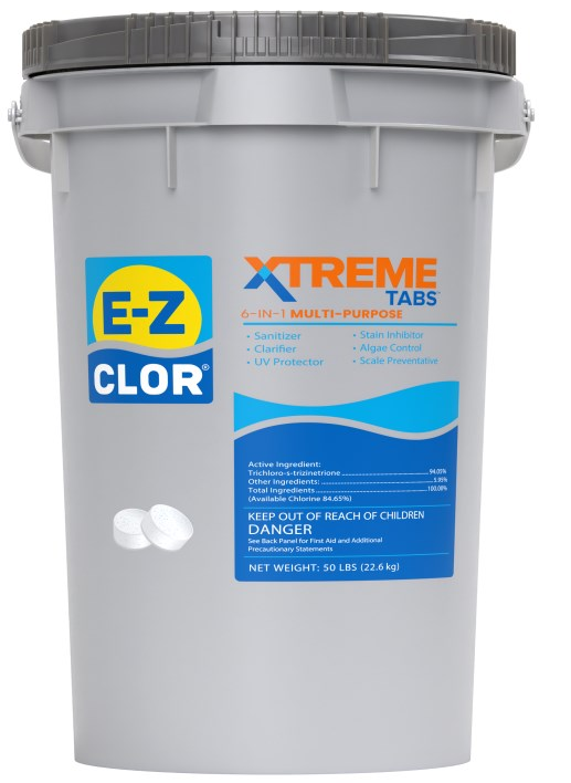 Premium pool care programs offer improved water quality, fewer issues and easier pool ownership. E-Z Clor Xtreme Tabs are slow-dissolving blended chlorine tablets that kill bacteria and control algae. It also acts as a clarifier and prevent unsightly staining and damaging scale from forming.