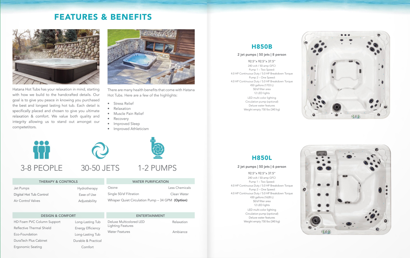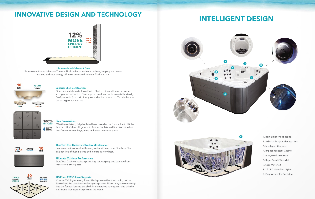 Hatana Hot Tubs has your relaxation in mind, starting with how we build to the handcrafted details. Our goal is to give you peace in knowing you purchased the best and longest lasting hot tub. Each detail is specifically placed and chosen to give you ultimate relaxation & comfort. We value quality and integrity making us stand out amongst our competitors.