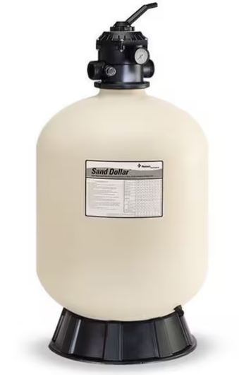 The one-piece Sand Dollar® top mount filter features a clamp style, six-position multiport valve. Special lateral design provides superior flow characteristics and long filter cycles for economical operation.