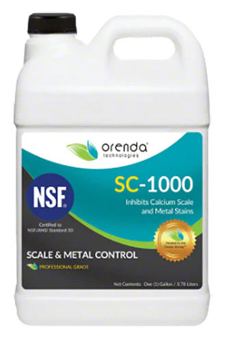 SC-1000 is an environmentally-friendly chelating agent that binds to metals and minerals. SC-1000 is great for pool startups and is also used for ongoing maintenance to help prevent carbonate scale formation and metal oxidation/staining. SC-1000 contains no phosphates. SC-1000′s formulation was awarded the Environmental Protection Agency’s Presidential Green Chemistry Award for its implementation of environment-friendly chemical technology.